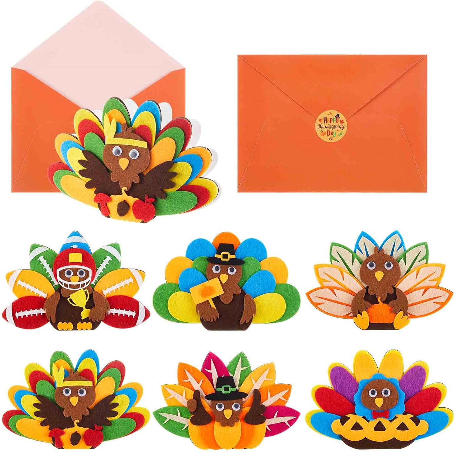 Tenceur 6 Pack Thanksgiving Felt Turkey Cards with Envelopes for Kids
